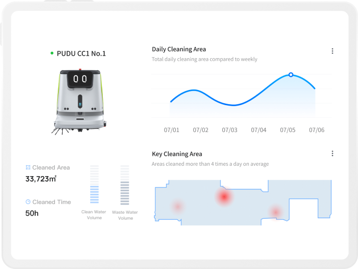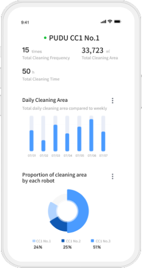 - - 청소 효과의 디지털화 및 시각화로 로봇의 작업 상태를 수집하고 요약하여 자동으로 청소 보고서 생성